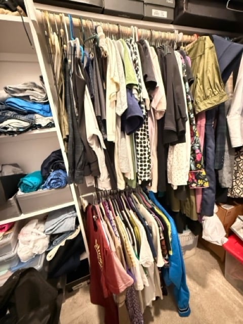 Rotate Seasonally – Use clear bins to rotate seasonal clothes in and out of prime space.